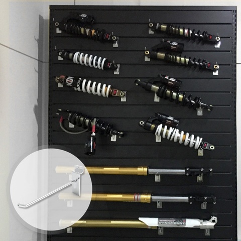 วัสดุเหล็กสำหรับผนังไม้ระแนงตะขอแขวนโชว์โลหะแบบง่ามเดี่ยวขนาด4นิ้วสำหรับร้านค้าและซูเปอร์มาร์เก็ต